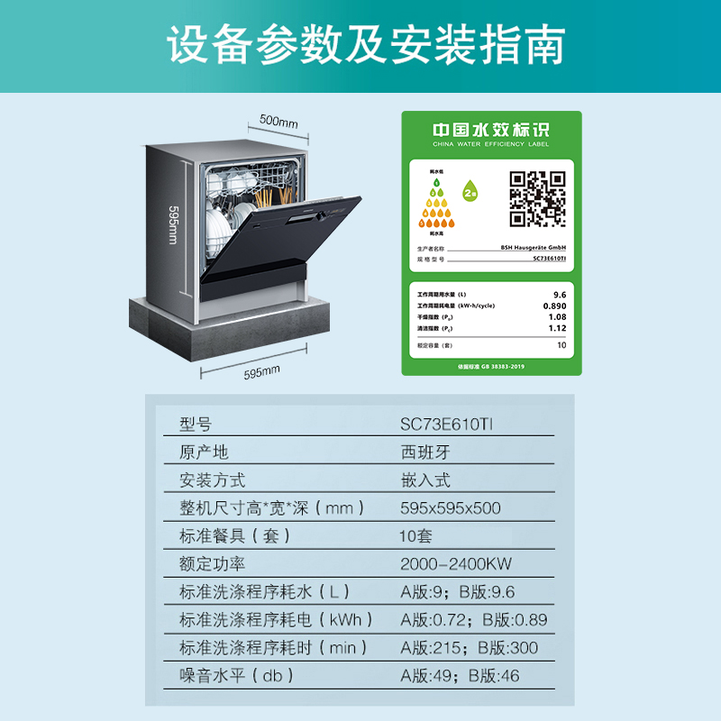 SIEMENS Siemens automatic disinfection household imported embedded dishwasher 10 sets SC73E610TI