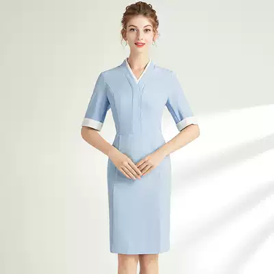 Tangyue 2021 summer new beautician overalls female beauty salon health hall SPA technician dress mid-sleeve