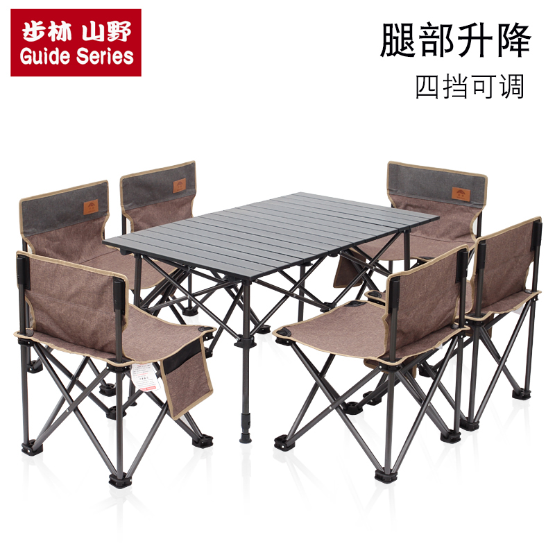 Outdoor table adjustable high and low four-stop adjustment folding table and chairs combined picnic table and chairs Self-driving barbecue table and chairs