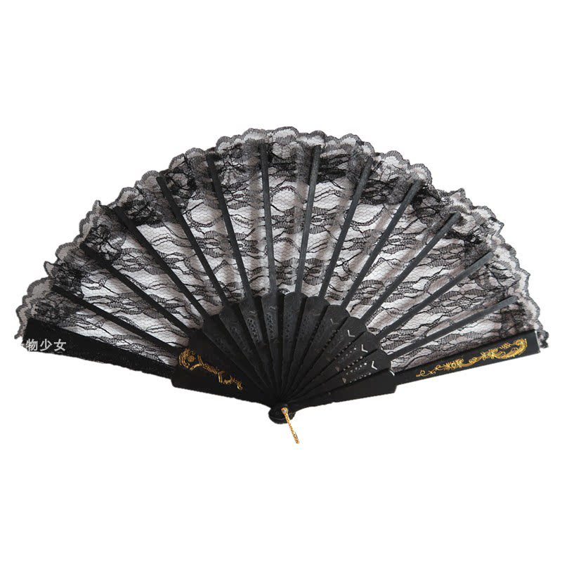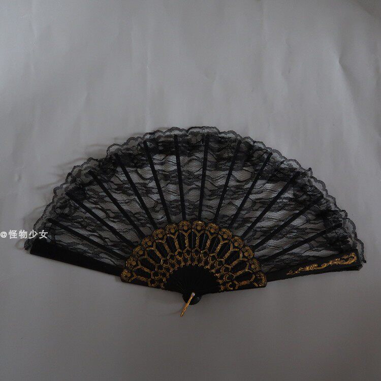 Monster Teenage Girl Ins Retro Dark Black Ensemble Abstinence's Hollowed-out Lace Fan Photo Prop Gothic