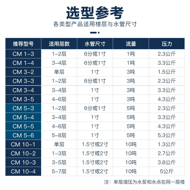 CM3-3 Flow 3 Tons Pressure 2 kg Piggyback CM3-4 Flow 3 Tons Pressure 2.8 Kg Piggyback CM3-5 Flow 3 Tons Pressure 3.5 Kg Piggyback CM3-6 Flow 3 Tons Pressure 4.2 Kg Piggyback CM5-3 Flow 5 Tons Pressure 2.3 Kg Piggyback CM5-4 Flow 5 Tons Pressure 3 kg Piggyback CM5-5 Flow 5 Tons Pressure 3.8 kg Piggyback CM5-6 Flow 5 Tons Pressure 4.6 Kg Piggyback CM3-3 Flow 3 Tons+ 2 kg box CM3-4 flow 3 tons + 2.8 kg box CM3-5 flow 3 tons + 3.5 kg box CM5-3 flow 5 tons + 2.3 kg box CM5-4 flow 5 tons + 3 kg box CM5-5 flow 5 tons + 3.8 kg box CM5-6 flow 5 tons + 4.6 kg box CM10-2 inverter pump box cm10-3 inverter pump box cm10-4 Frequency conversion pump box type CM15-2 frequency conversion pump box type CM15-3 frequency conversion pump box type CM15-4 frequency conversion pump box type CM25-2 frequency conversion pump box type CM25-3 frequency conversion pump box other models for detailed customer service
