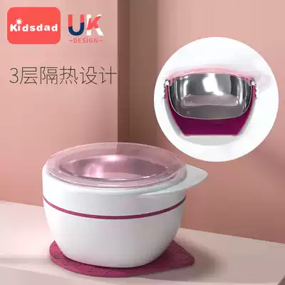 kidsdad children's cutlery set baby rice bowl plate baby sucker stainless steel water injection heat insulation non-staple food bowl