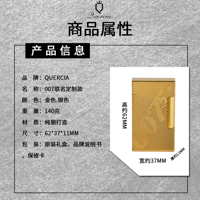 Quercia Langsheng lighter James Bond 007 movie co-branded version side-slip steel tone kerosene lighter