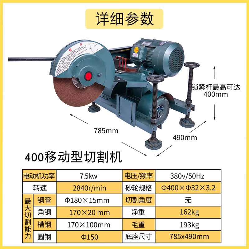 Lined Mobile Cutting Machine 400 Type Industrial Grade High Power Wood Profile Steel 45 Degrees Three Phase 380v Heavy