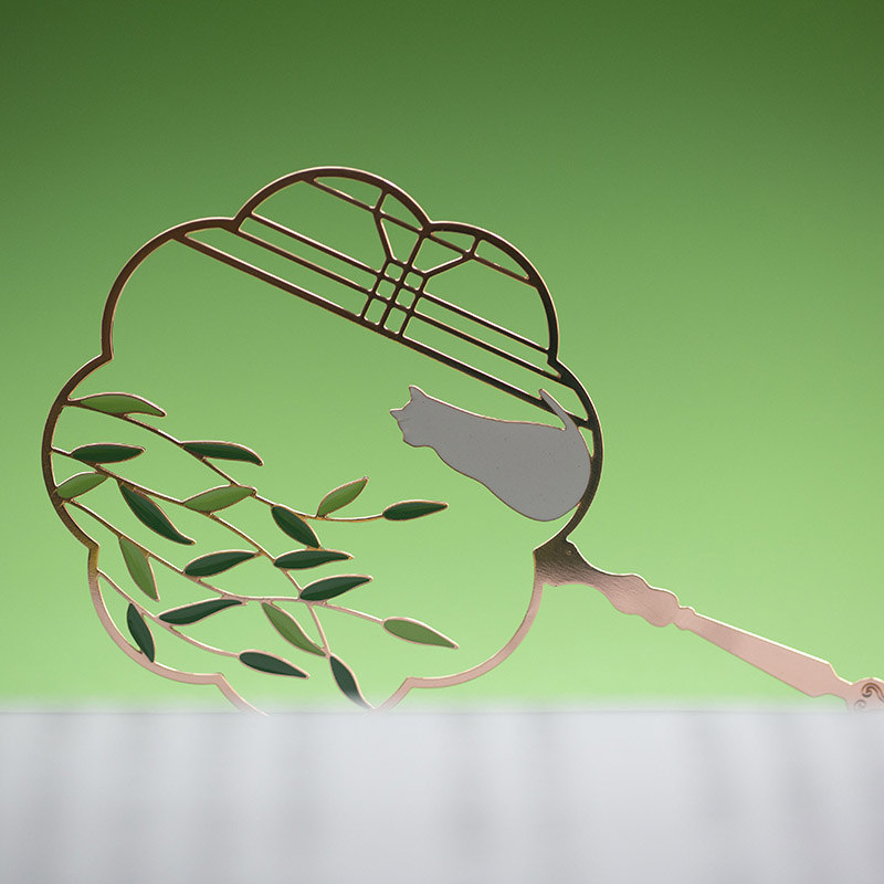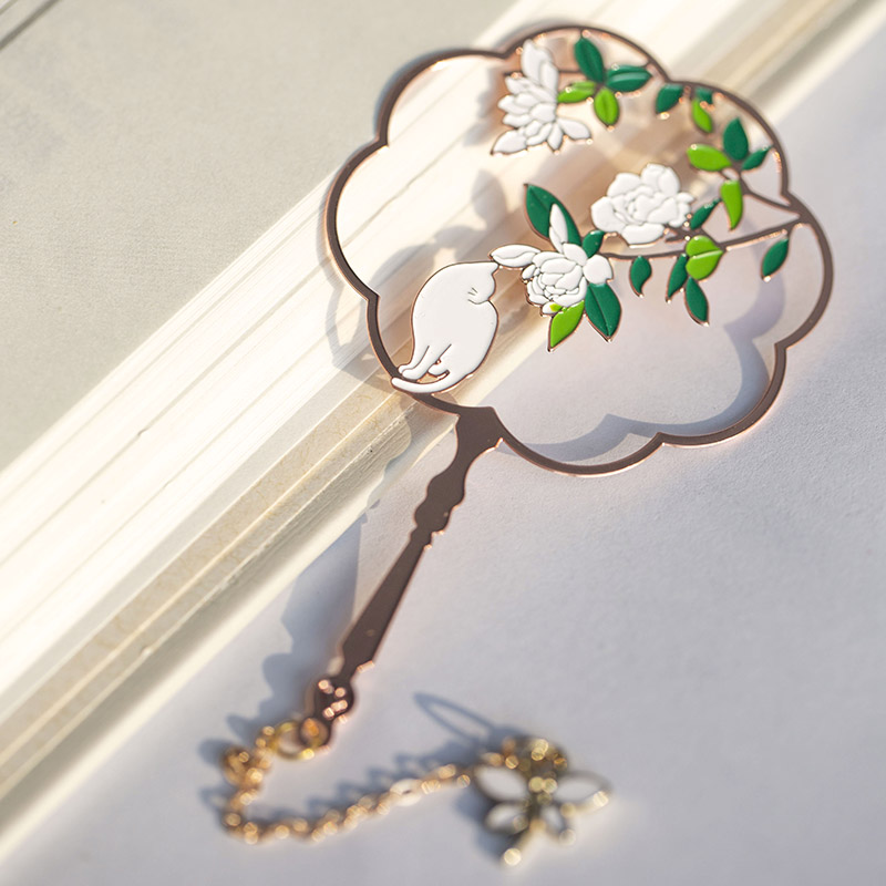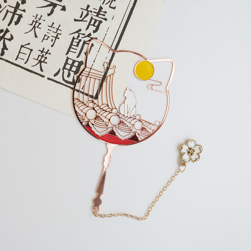 Cat fan bookmark Chinese style classical literature and art small fresh students with stationery Graduation Teacher's Day gifts Cat cultural and creative gifts on the roof of the Forbidden City Ancient style metal bookmark box