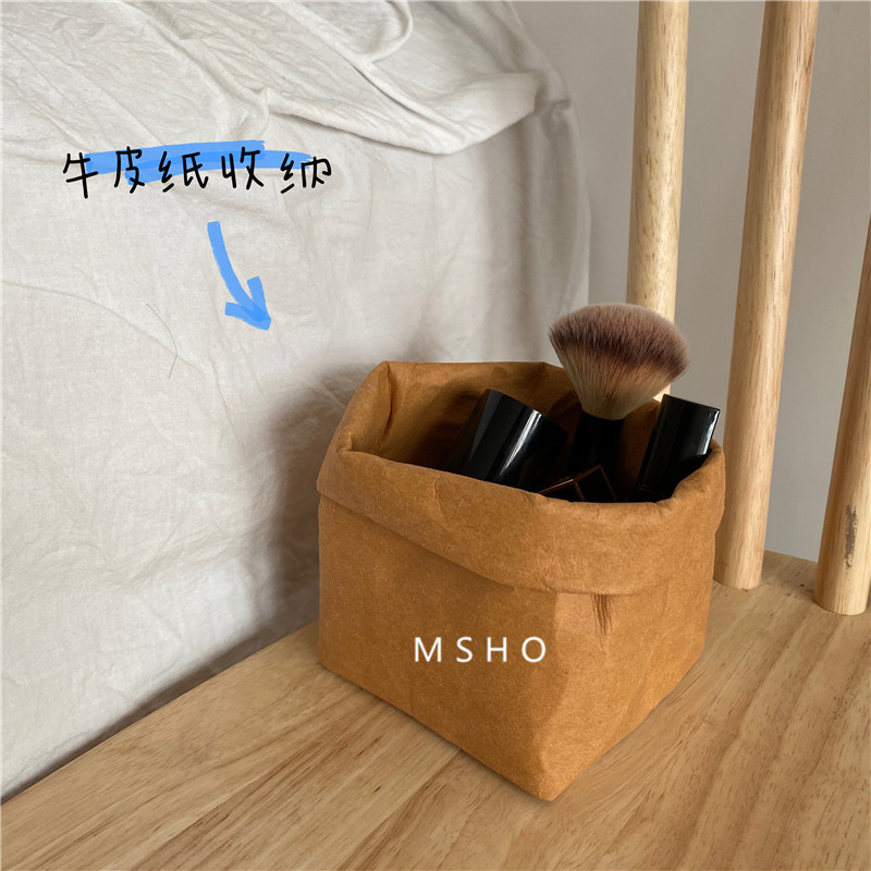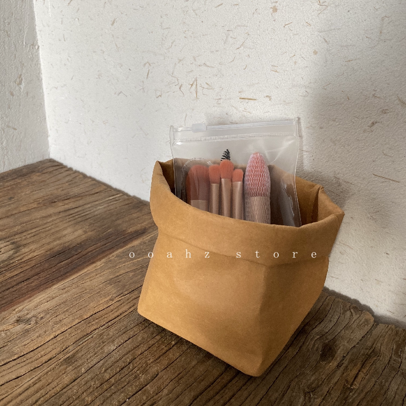 ooahz kraft paper storage bag~cosmetic brush storage bucket plant potted set desktop sundries storage basket