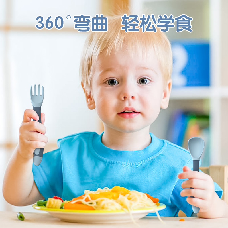 Baby School Eating Training Spoon Elbow Fork Spoon Suit Baby Cob Spoon Can Bend A Year Old Children Cutlery