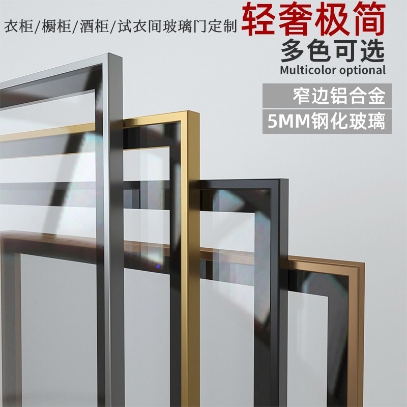 Wardrobe door custom sliding and pulling minimalist aluminum frame extremely narrow side tempered glass door integral wine cabinet display cabinet cabinet custom made