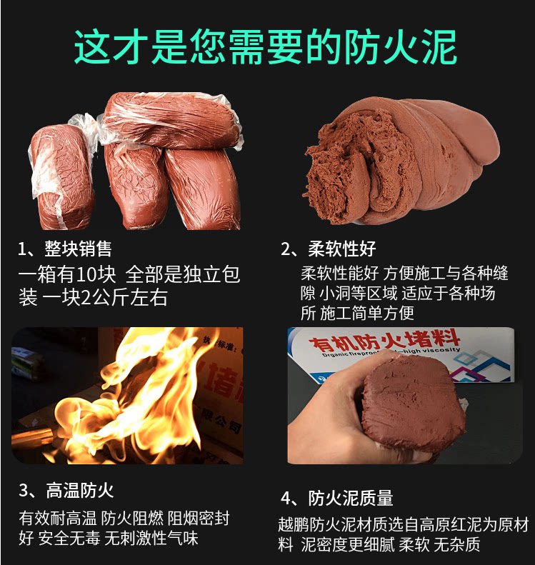 Organic fireproof mud 2Kg (common) pack of organic fireproof mud 10Kg (common) half case organic fireproof mud 20Kg (common) whole box organic fireproof mud 2Kg (3C national standard) a pack