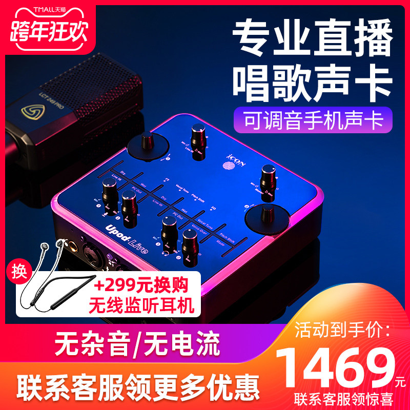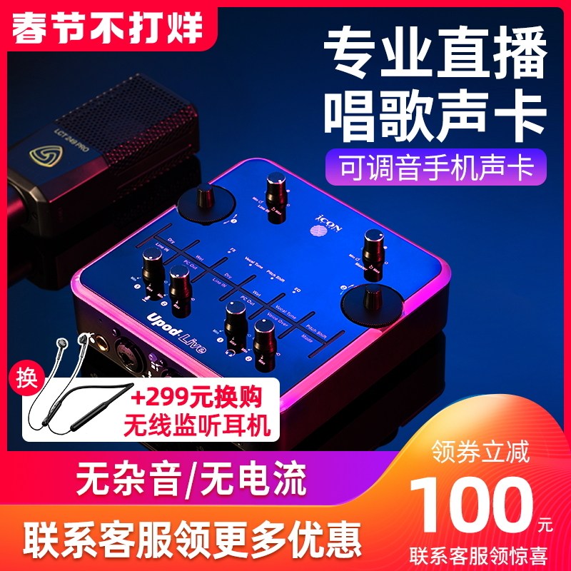 ICON Upod live Aiken sound card singing mobile phone dedicated live singing recording dedicated mobile phone sound card professional full set of official flagship store usb external outdoor K song net red vibrato