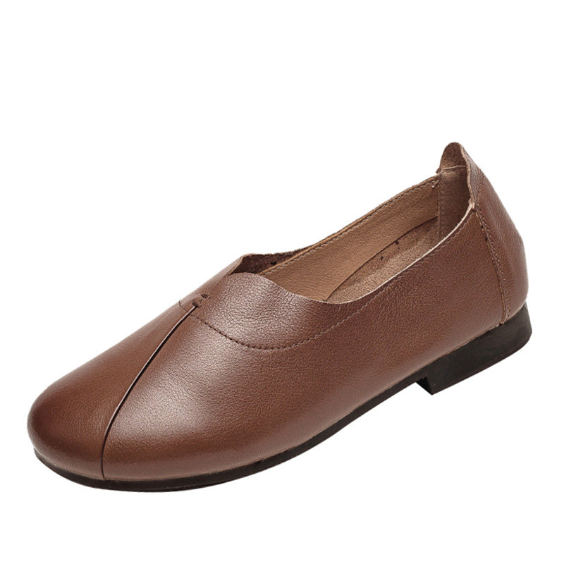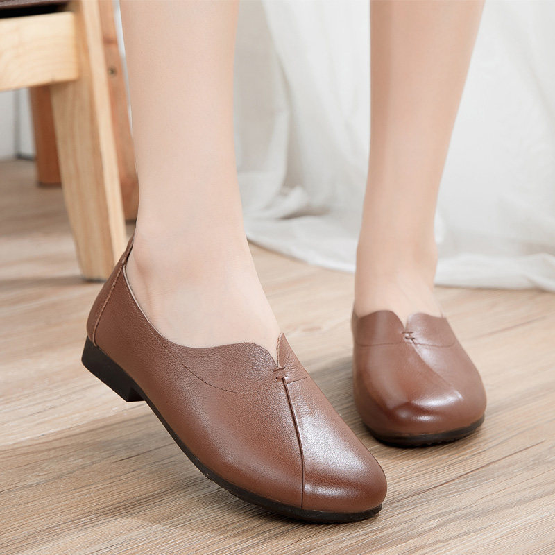 Mom Shoes Genuine Leather Round Head Soft Bottom Casual Middle Aged Women Shoes Non-slip Bull Gluten Bottom Comfort Flat Bottom Single Shoes Seniors Shoes