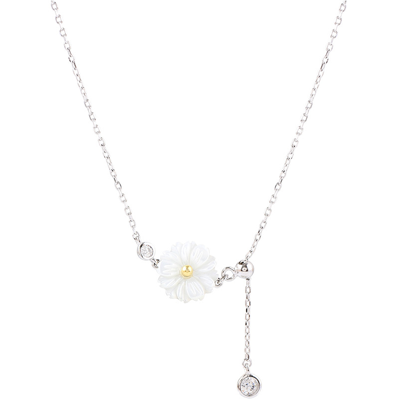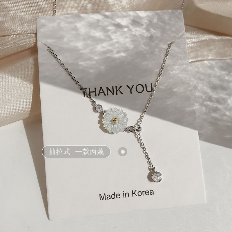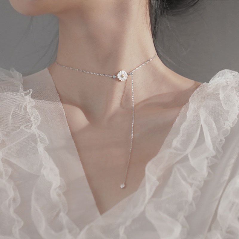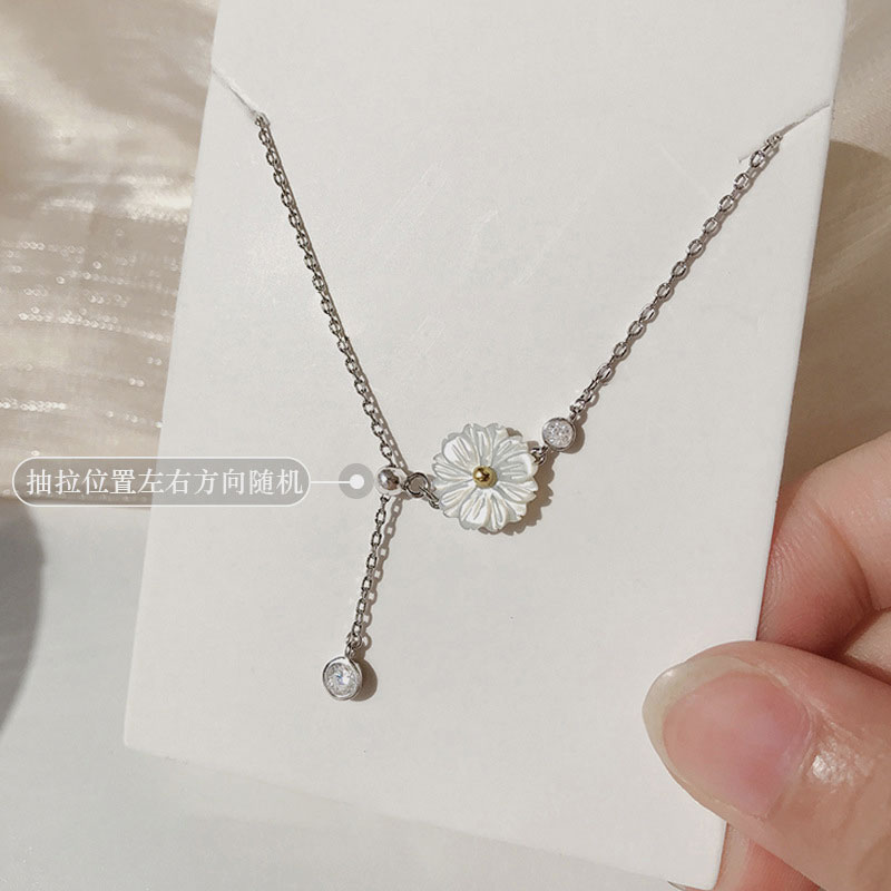 Korean small daisy necklace Female sterling silver clavicle chain fresh wave net red temperament does not fade wild Korean version of the necklace tide
