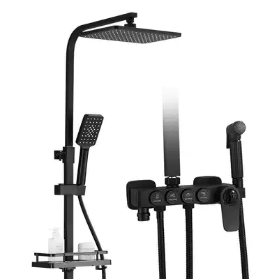 European household all copper shower shower shower kit pressurized thermostatic shower bathroom shower black nozzle dressing room
