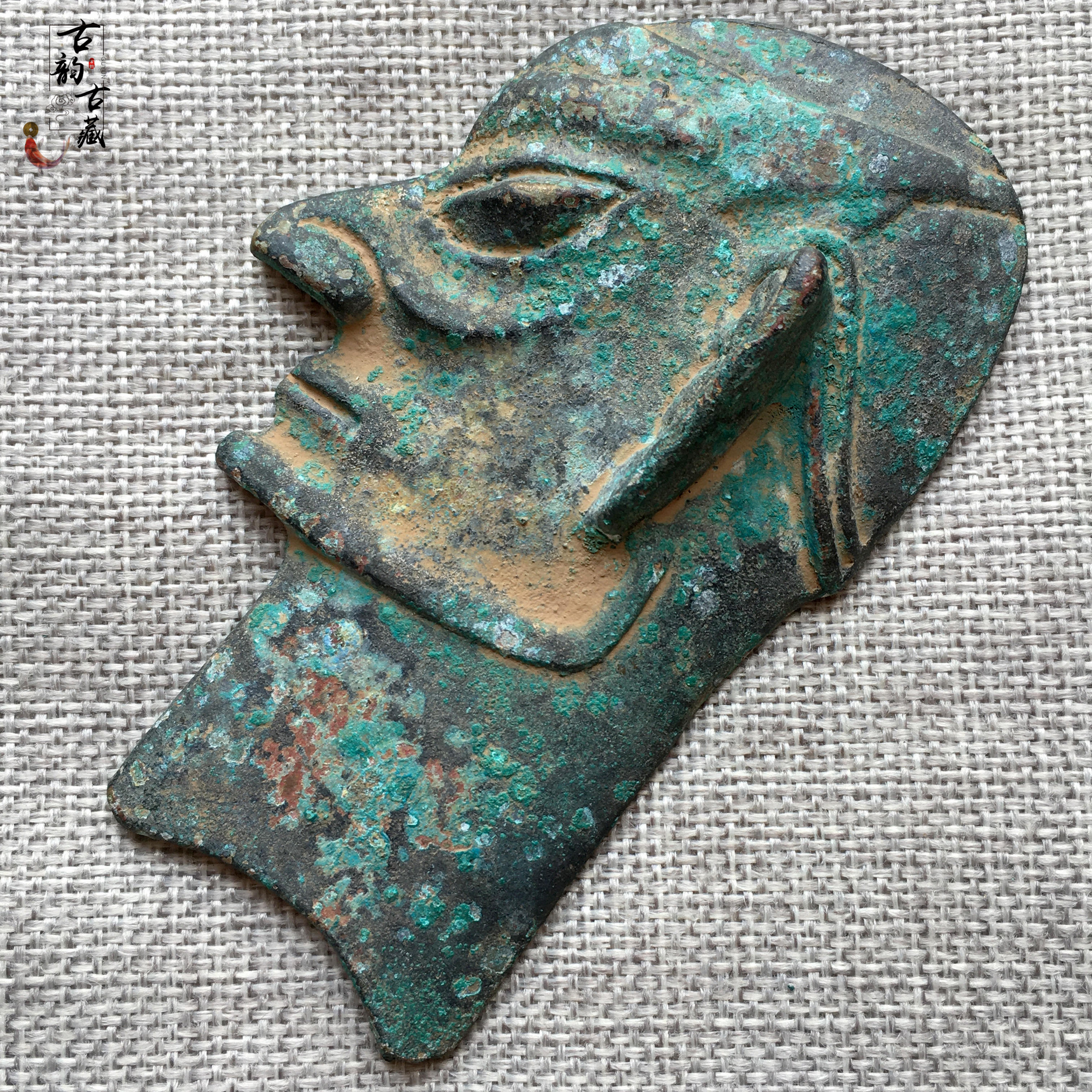 Antique Collection Antique Sanxingdui Bronze Mask Ornament Made of Old Antique Green Embroidery Pack Pulp Yin Shang Mask Copper Mask