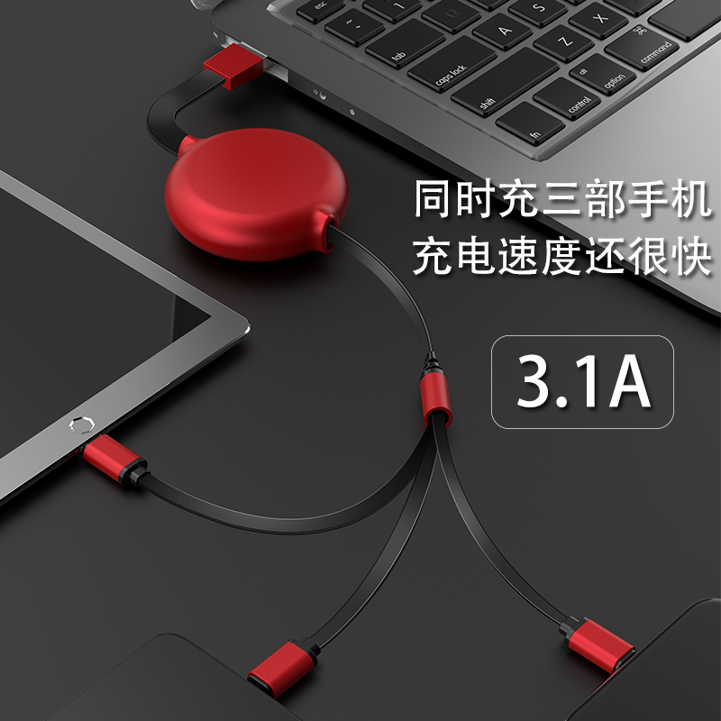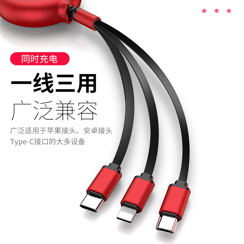 Three-in-one data line 3 1A fast charge and one-drag three mobile phone QC telescopic Type-C charging line is suitable for Apple's multi-function PD Android USB flash line