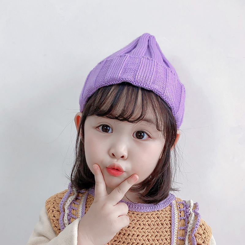 Children's wool hat autumn and winter solid color Korean version ins candy color knitted hat boys and girls baby warm hat winter