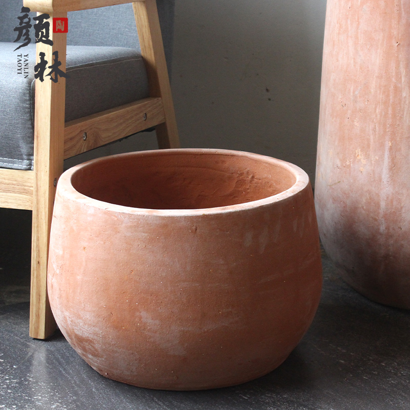 Fields Garden Brick Color Red Pottery New Technique Exposure Flower Pots Floor Large Size Combined Flower Pots Landscape Gardening Deep Basin Clay basin