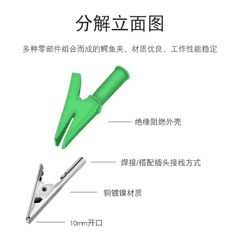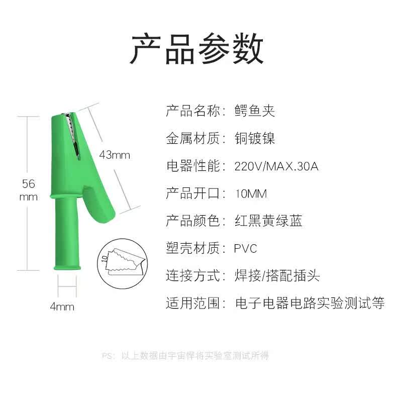 Pure Copper Battery Clip Crocodile Clip Wire Clamp number with 4mm jack plug-in high pressure full package jacket clip 30a
