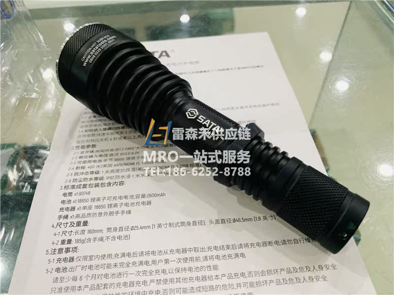 SATA Shida 90748 high-performance long-range strong light rechargeable flashlight ultra-bright portable inspection work industry
