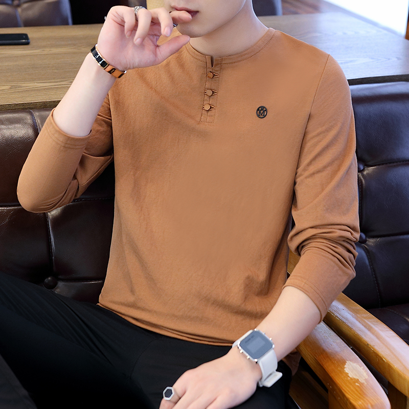 Rich bird Chinese style long-sleeved T-shirt men's Korean version trend round neck linen solid color youth casual handsome bottoming shirt