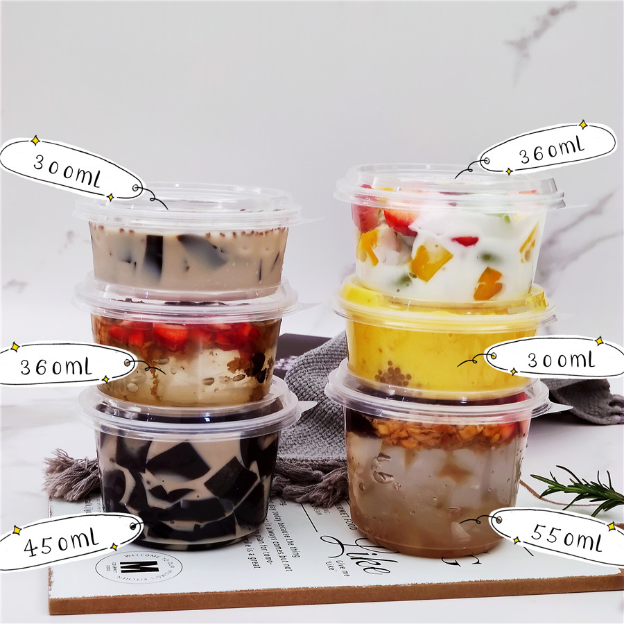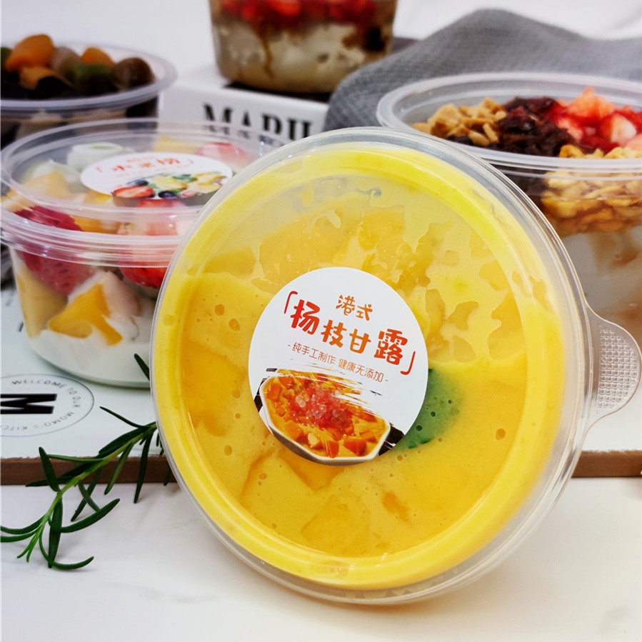 Round disposable dessert packing box plastic roasted fairy grass taro round fruit fishing ice powder special bowl commercial takeaway