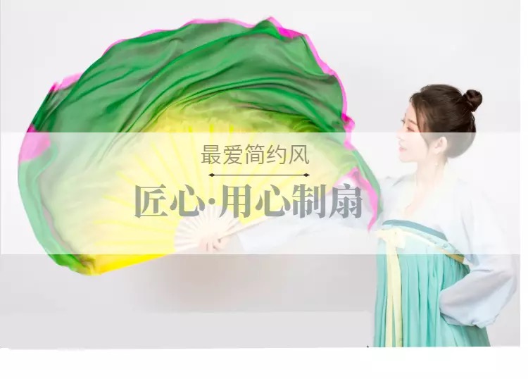 CCTV June Qing River Qingho Green bifacial dance fan bifacial gradually layer color lengthened true silk stage performance fan
