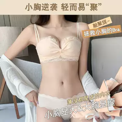 Strapless bra set gathered non-slip small chest without steel ring adjustment underwear thin sexy lady summer
