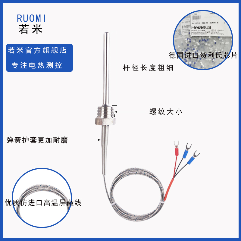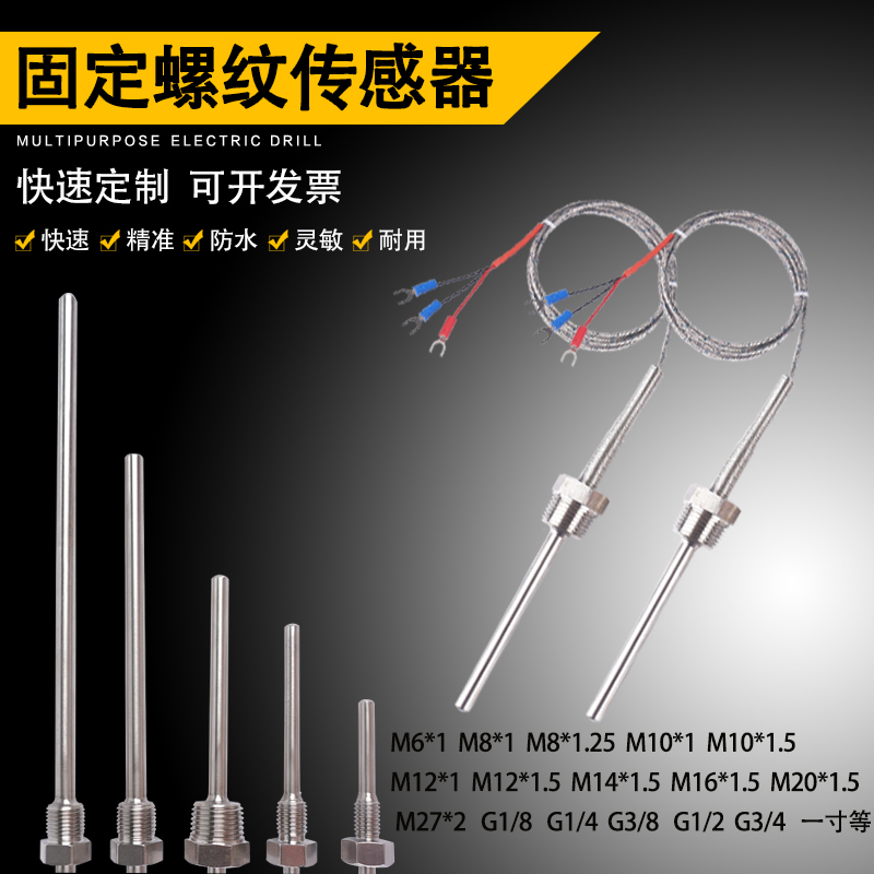 Fixed thread PT100 temperature sensor platinum thermal resistance stainless steel temperature measurement temperature control monitor thermocouple k type E