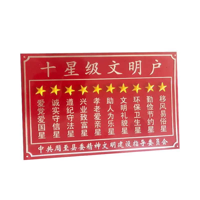 Ten-star civilized household sign custom-made sanitary and civilized family brand front three packs of responsibility brand party member household customization