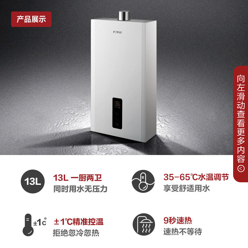 Fotile Fangtai JSQ25-D13E1 Gas Water Heater 13 Liter Natural Gas Household Constant Temperature Strong Exhaust Type