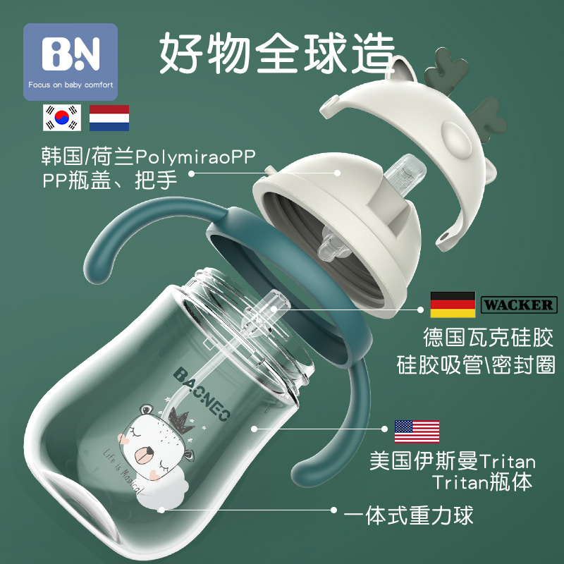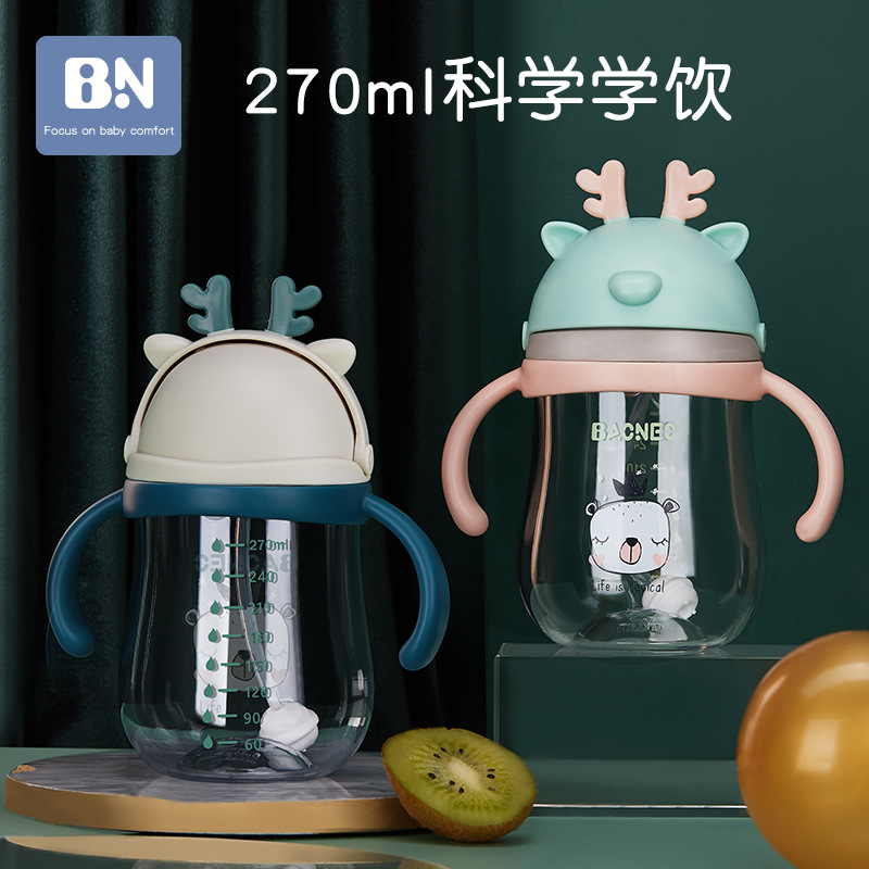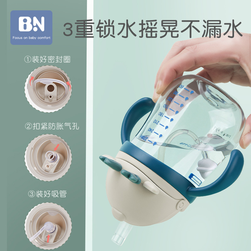 Bene's new baby anti-fall anti-choking with handle Gravity ball Children's kindergarten straw water glasses Baby Learn Drinking Cup