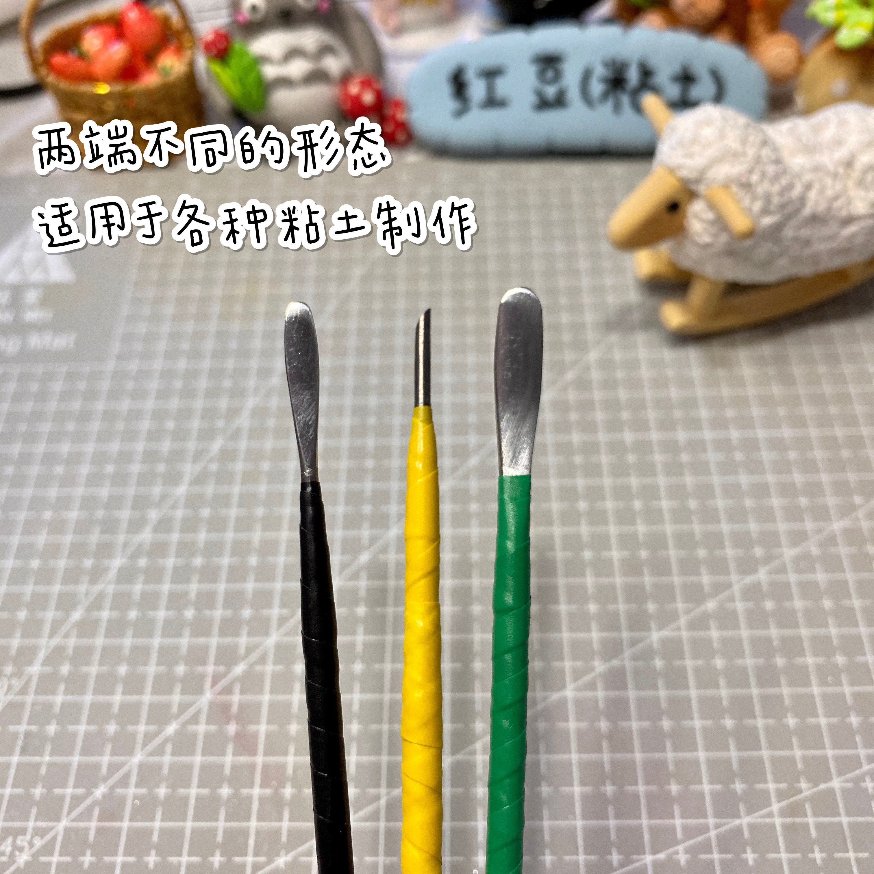 (Red Bean Clay) Stainless Steel Rag Tool Indentation Smears Rag Eye-opening Double Head Trowel Styling Knife