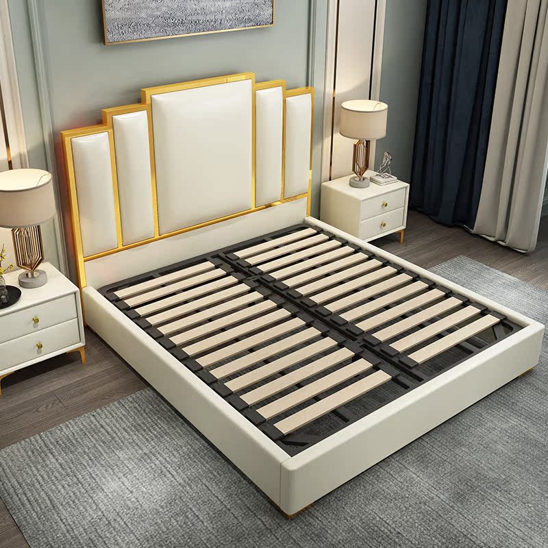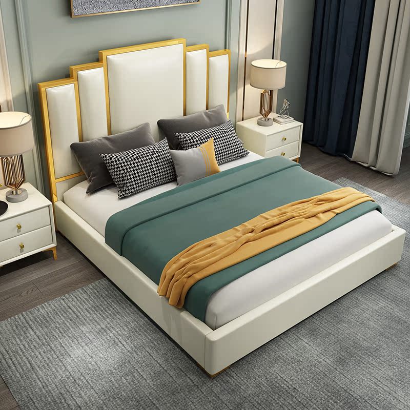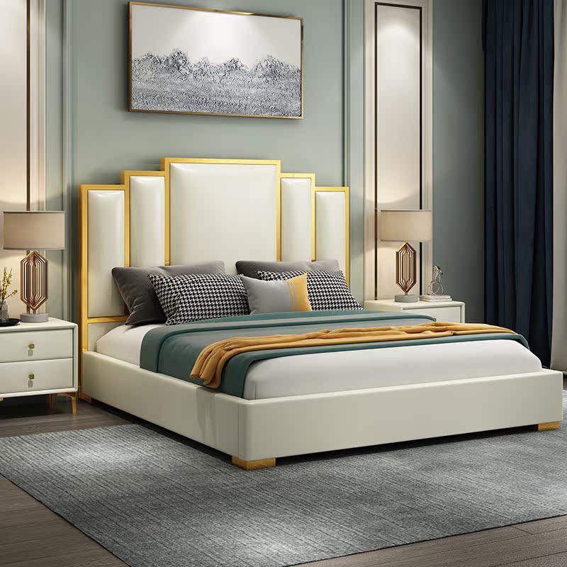 Modern light luxury bed ins net red bed American simple leather bed Hong Kong style 1 8m double bed master bed high-end wedding bed