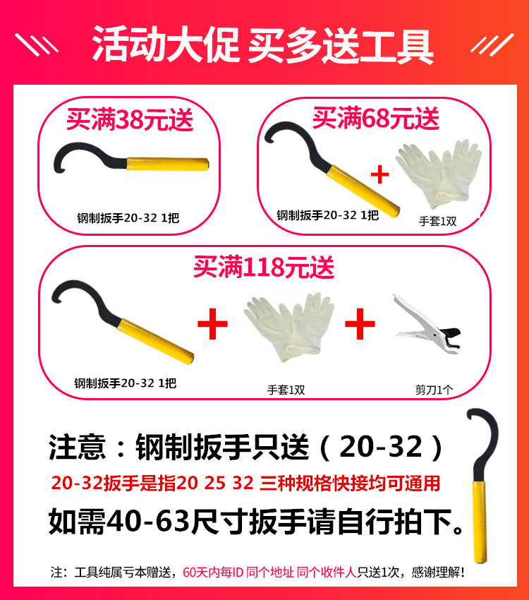 20pe (4 points) Fast and direct 25pe (6 points) Quick pick up direct 32pe (1 inch) Quick pick up direct 20pe (4 points) Quick pick up elbow 25pe (6 points) Quick pick up elbow