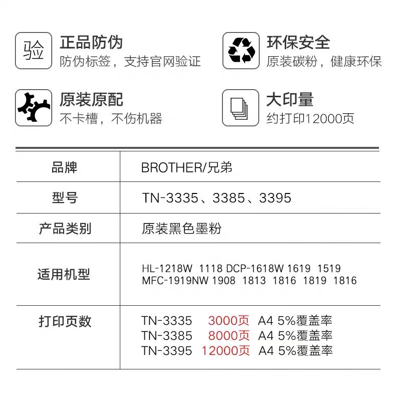 TN-3335 toner cartridge - can print 3000 pages (A4 paper 5% coverage) TN-3385 toner cartridge - can print 8000 pages (A4 paper 5% coverage)