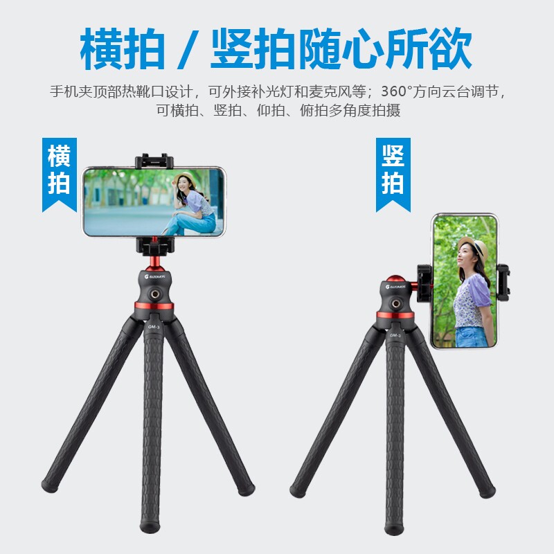 Gozhimi GM3 Octopus Tripod Mobile Phone Stand Portable Eight Catch Fish Vlog Handheld Gimbal Single Eye Micro Single Eye Camera Universal Tripod Selfie Octopus Mini Desktop Photo Douyin Camera Stand