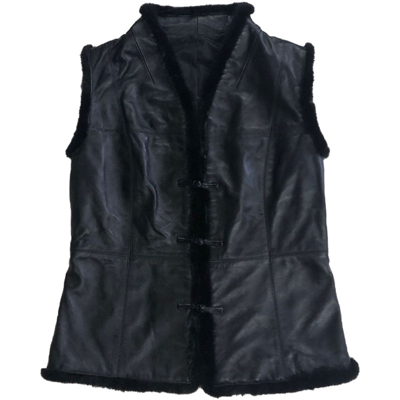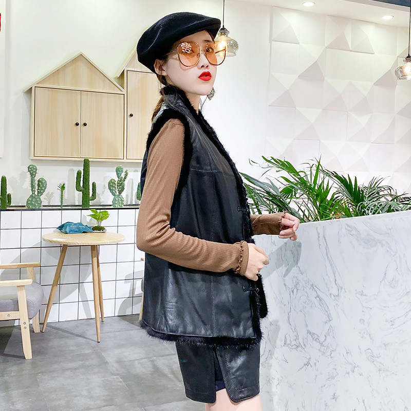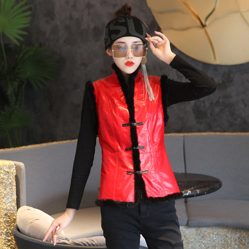 Fashionable dermis tang outfit waistcoat female autumn winter new style dish buckles stand collar sleeveless vest sheep skin goes all out mink wool coat
