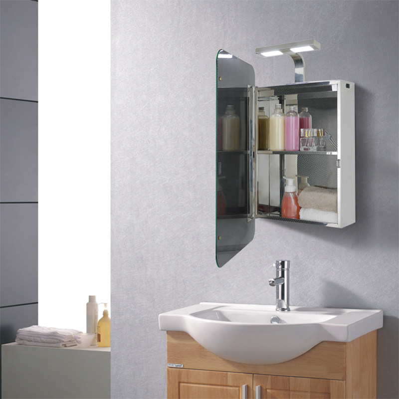 Bathroom Stainless Steel Mirror Cabinet Hanging Wall Style Free Nailing With Light Makeup Room Toilet Dresser cabinet minimalist Hyundai