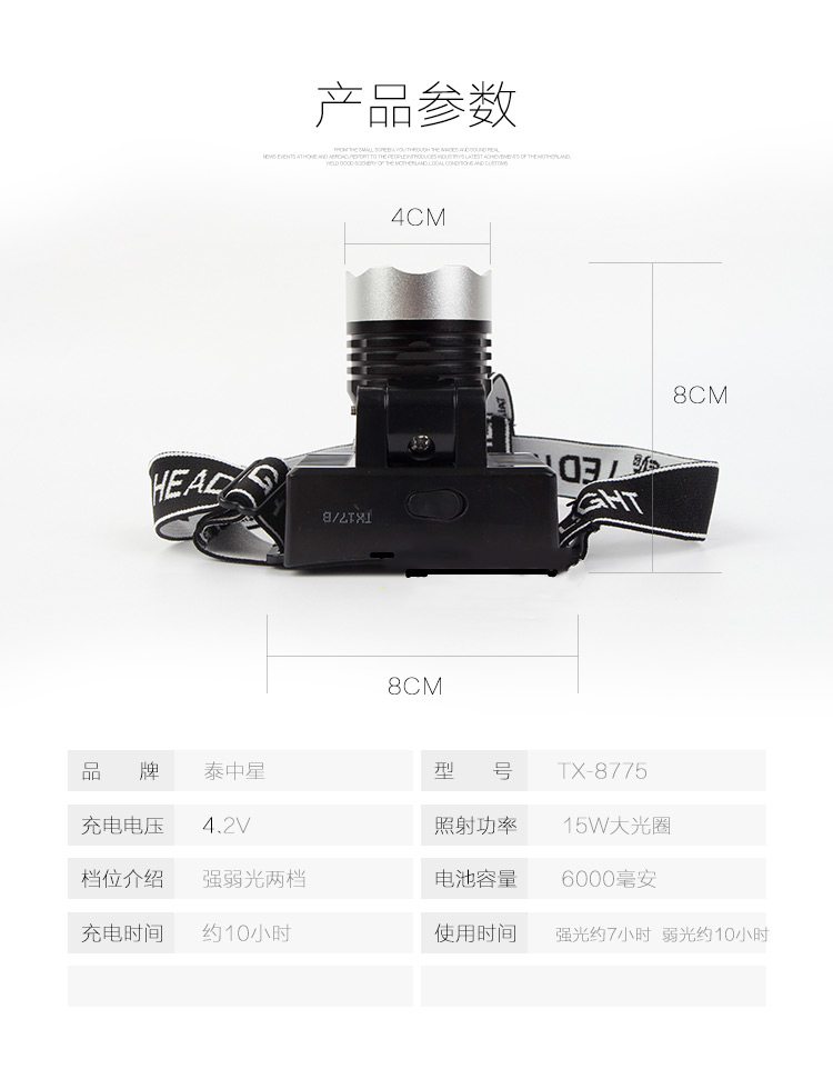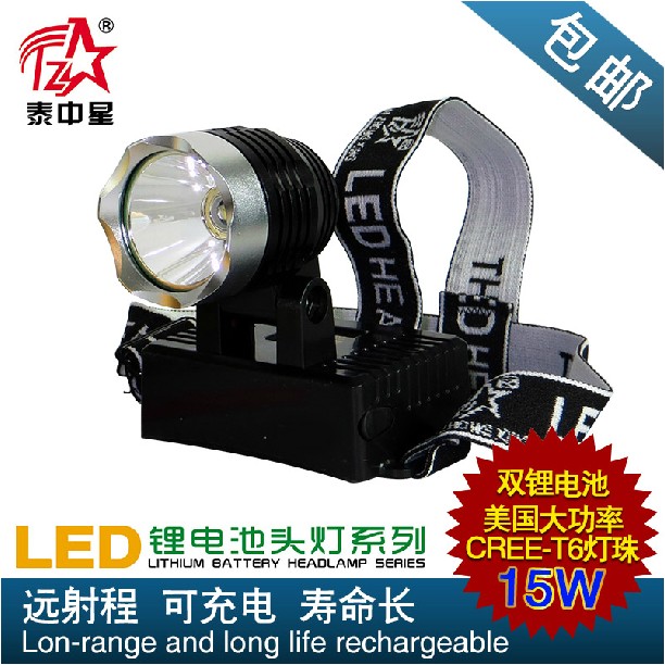 Thai Zhongxing TX-8775 15W T6 lamp beads LED double lithium battery high brightness and strong light rechargeable headlight