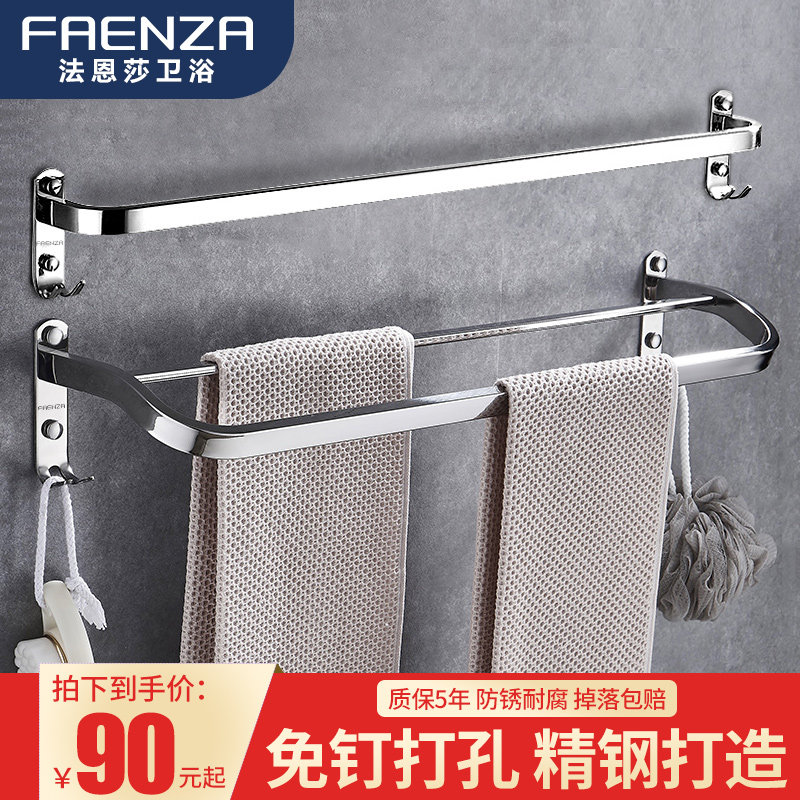 Faenza Punch Free 304 Stainless Steel Towel Rack Towel Rail with Hook Hotel Bathroom Shelf Wall Hanging Pole