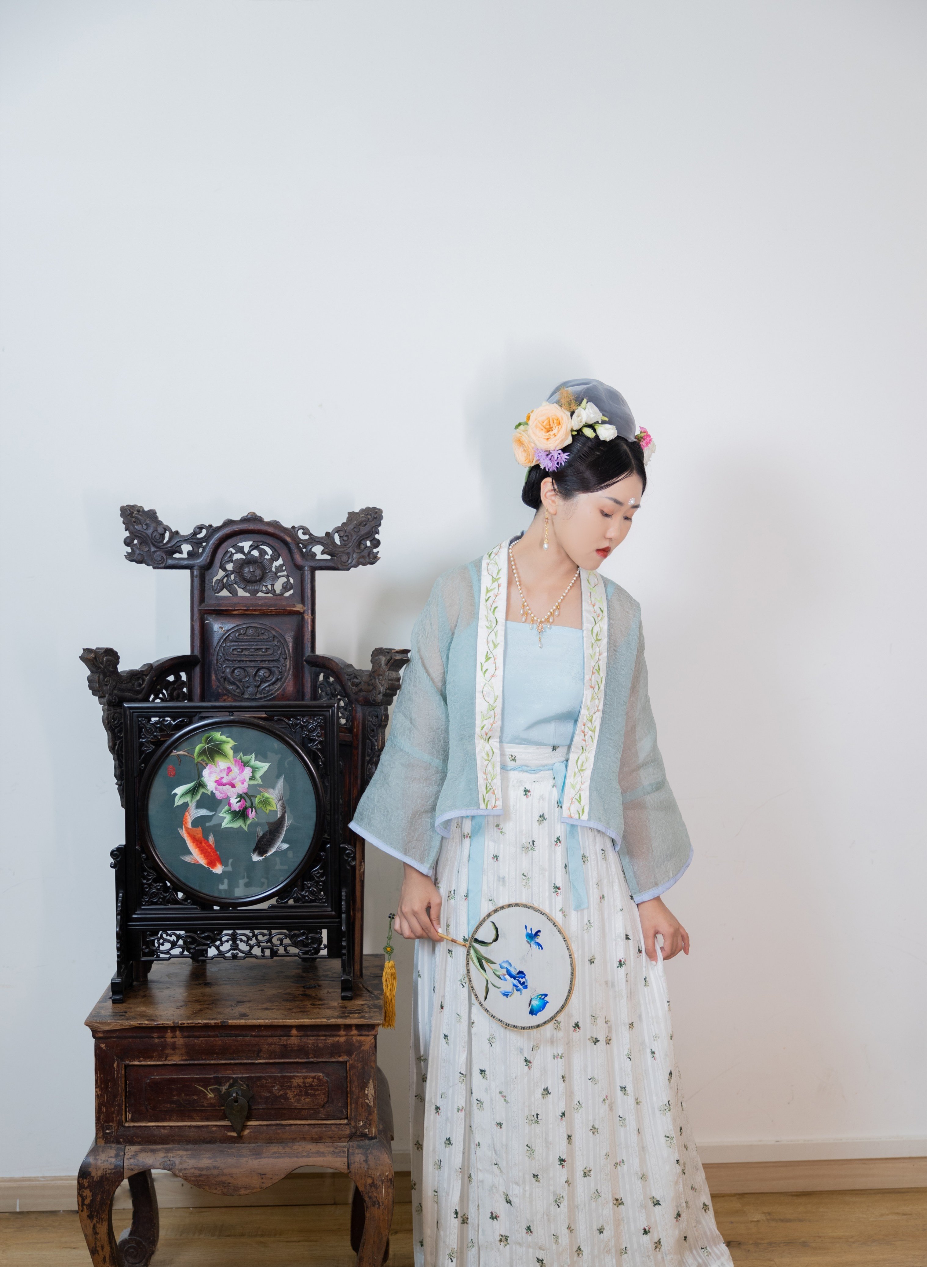 Short front and back long blouses, stacked skirts, imitation Song Dynasty suspenders