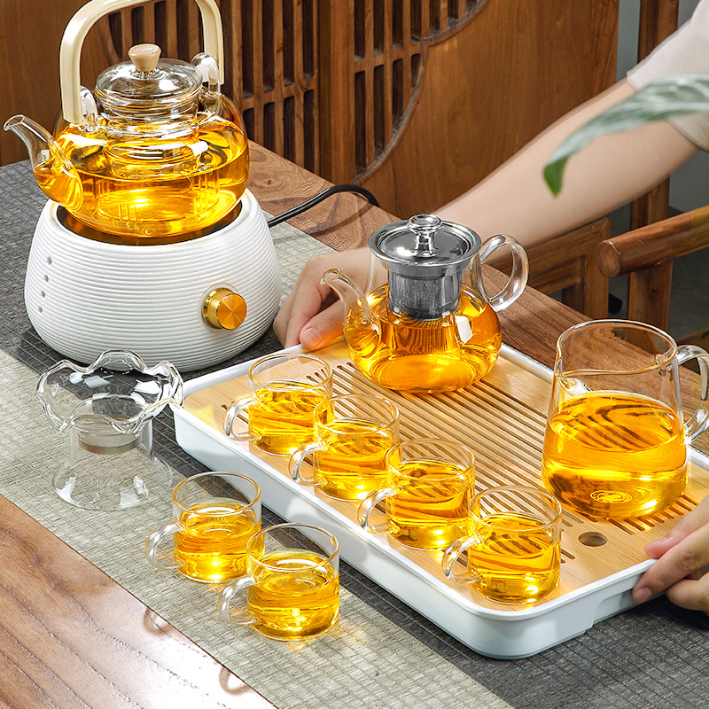 Spring envy Xiaoxian glass 8 pieces of matching tea Leaf black crystal stove (white) Maple Shuttle Lift-beam pot-358 Chunxie Envy Little Hands White put 9 pieces of the Wan Black Crystal Furnace (White) Maple Shuttle