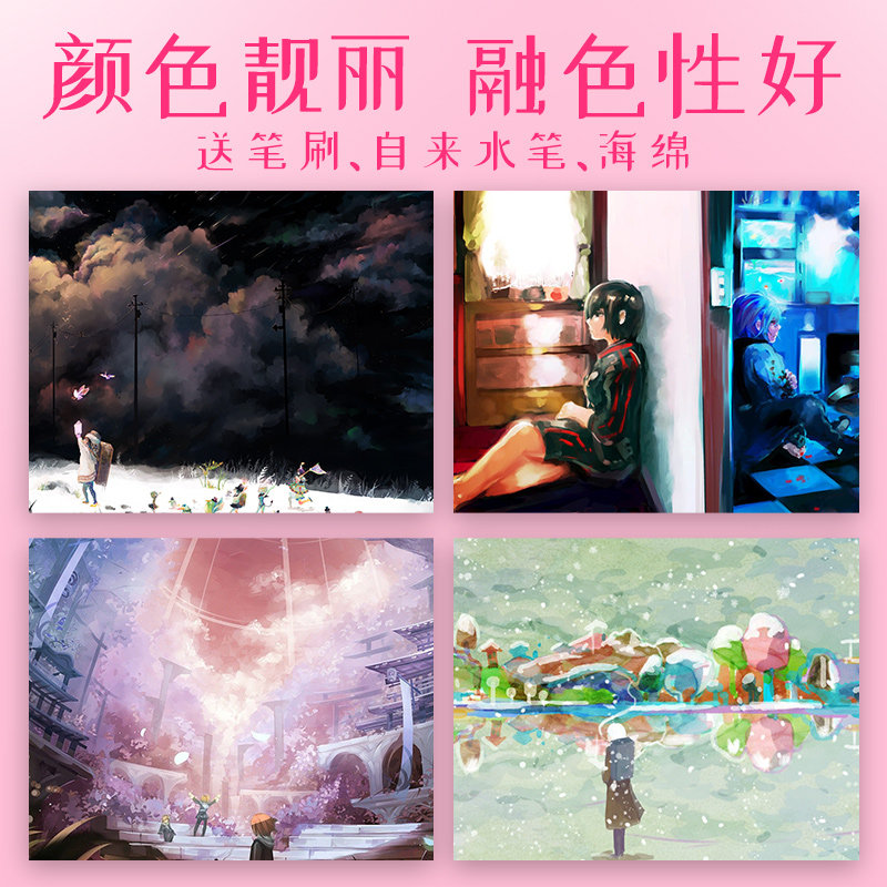 Morning light solid watercolor paint Art students special 24 colors 36 colors solid block mini portable beginner painting tool set for primary school students painting pigment water-soluble powder primer
