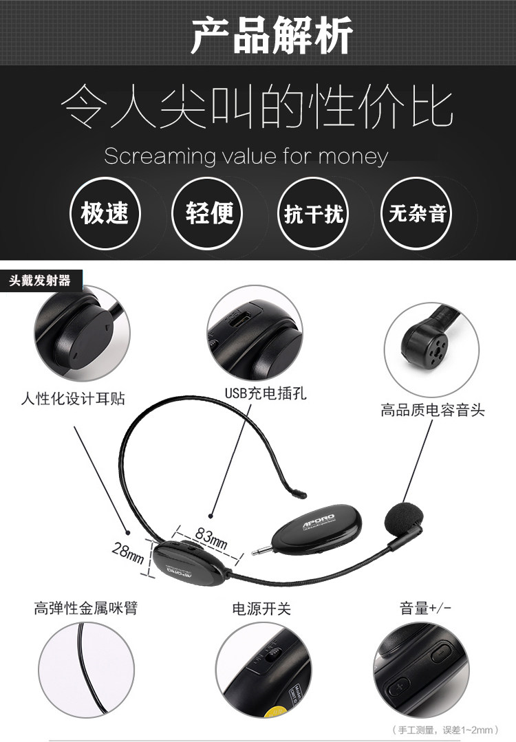 APORO 2 4G Wireless Microphone Amplifier Headset Audio Bluetooth Headset Lavalier Wireless Microphone