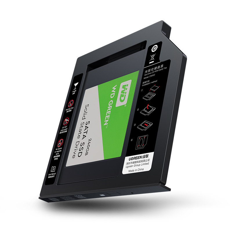 Green-linked optical drive hard drive bay box 9 5mm notebook SATA3 interface 2 5-inch mechanical bracket pass for ASUS Dell Lenovo ASUS HP Samsung Sony to change SSD solid state