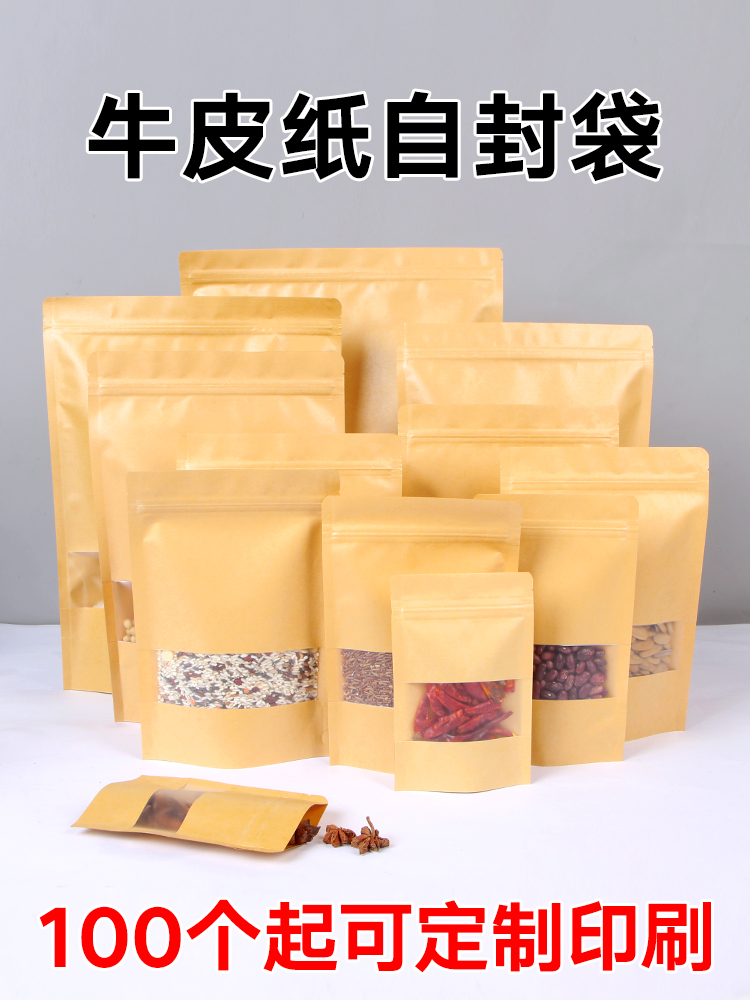 Open window kraft paper bag food tealeaves snowflake snack snack snack self-made dried fruit packaging bag seal waterproof