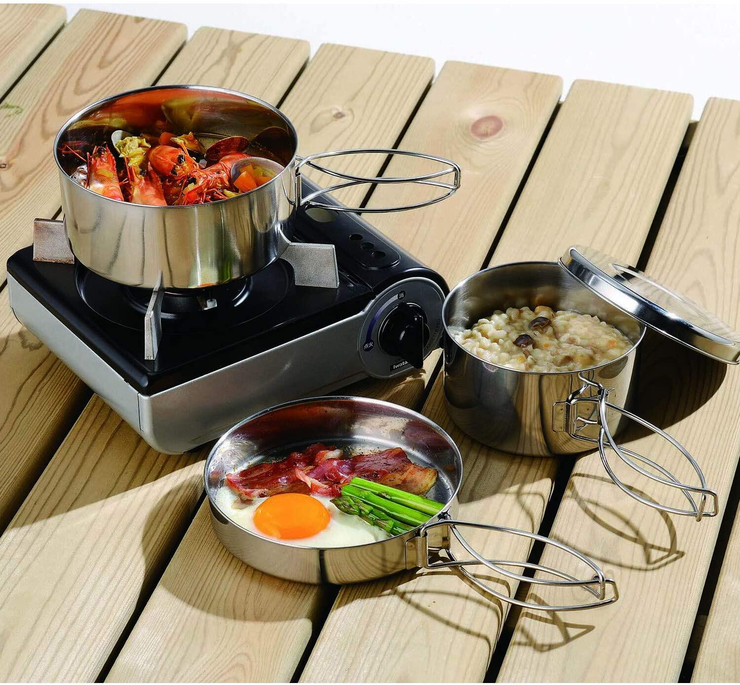 Japanese Brands Man Outdoor Camping Sola Shoulder Bag Stainless Steel 4 Pieces of Tableware Pan
