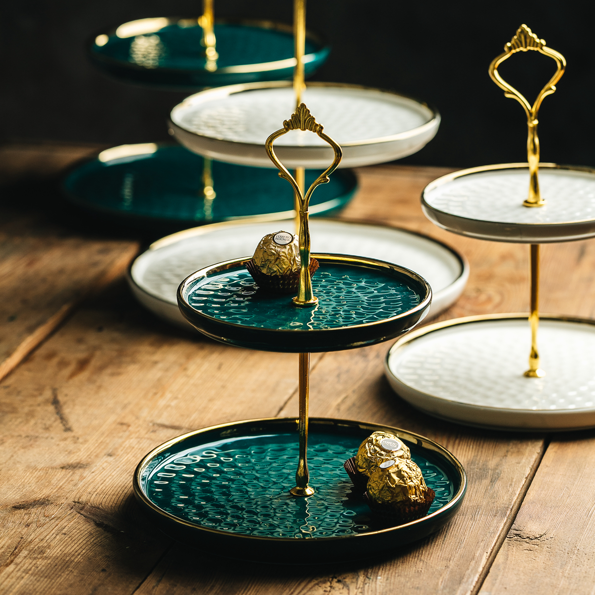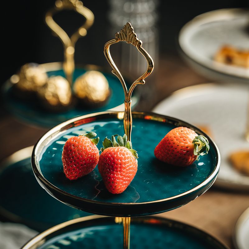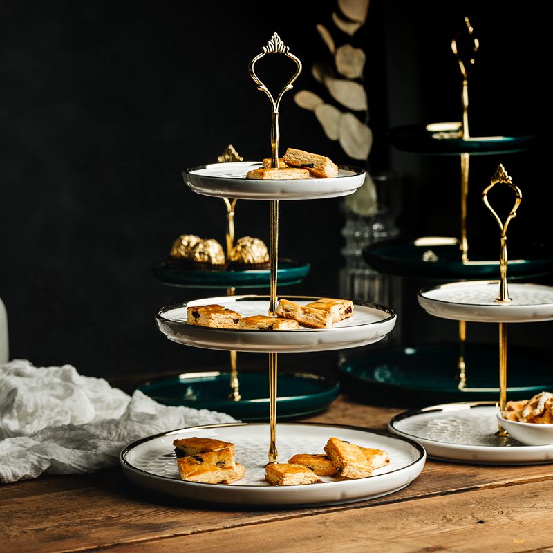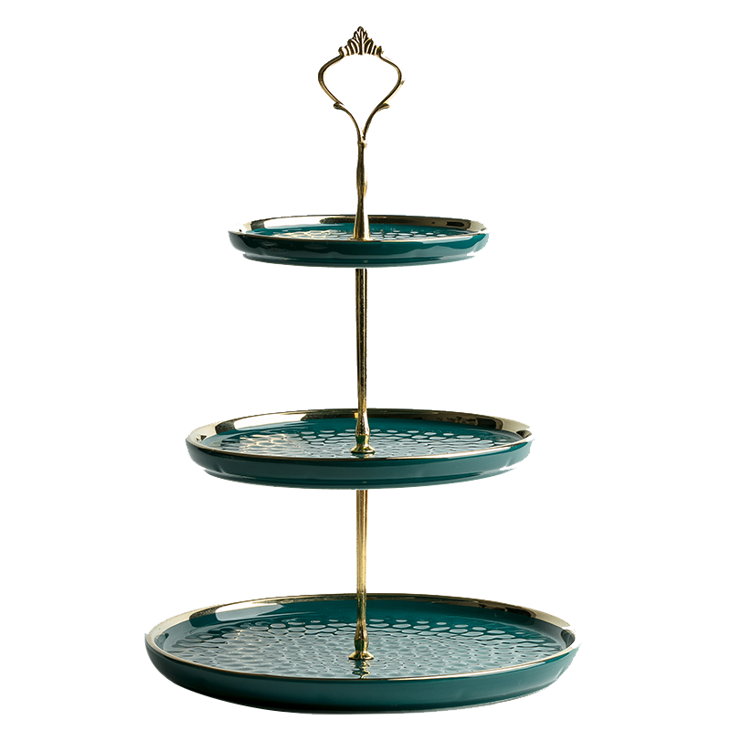 Dark green gold double-layer fruit plate (small size 6 inches 8 inches) dark green gold double-layer fruit plate (medium size 8 inches 10 inches) dark green gold three-layer fruit plate large 6-inch 8-inch 10-inch platinum double-layer fruit plate (small size 6 inches