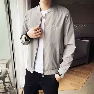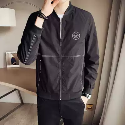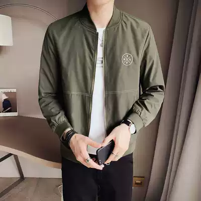 Casual sports jacket men's baseball collar Korean version of the trend 2021 spring and autumn new men's stand-up collar printed slim jacket