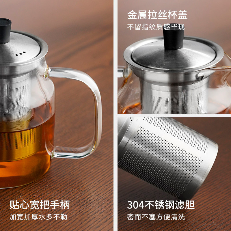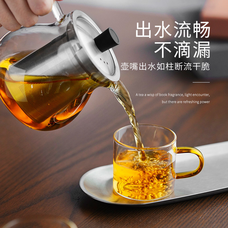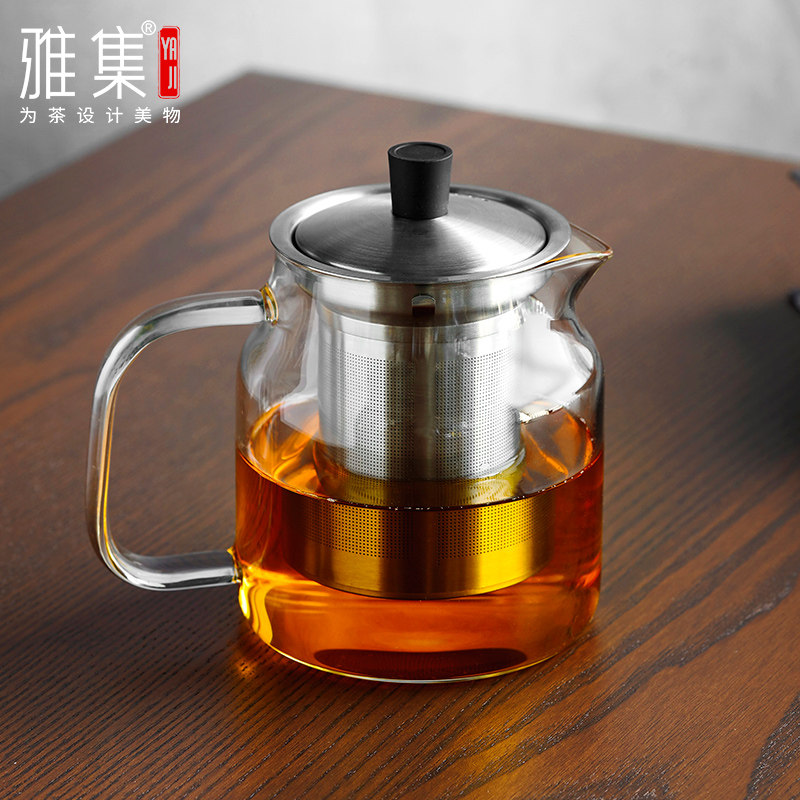 Yaji Leya glass teapot thickened heat resistant high temperature filter flower teapot household tea separation one-hand brewing teapot